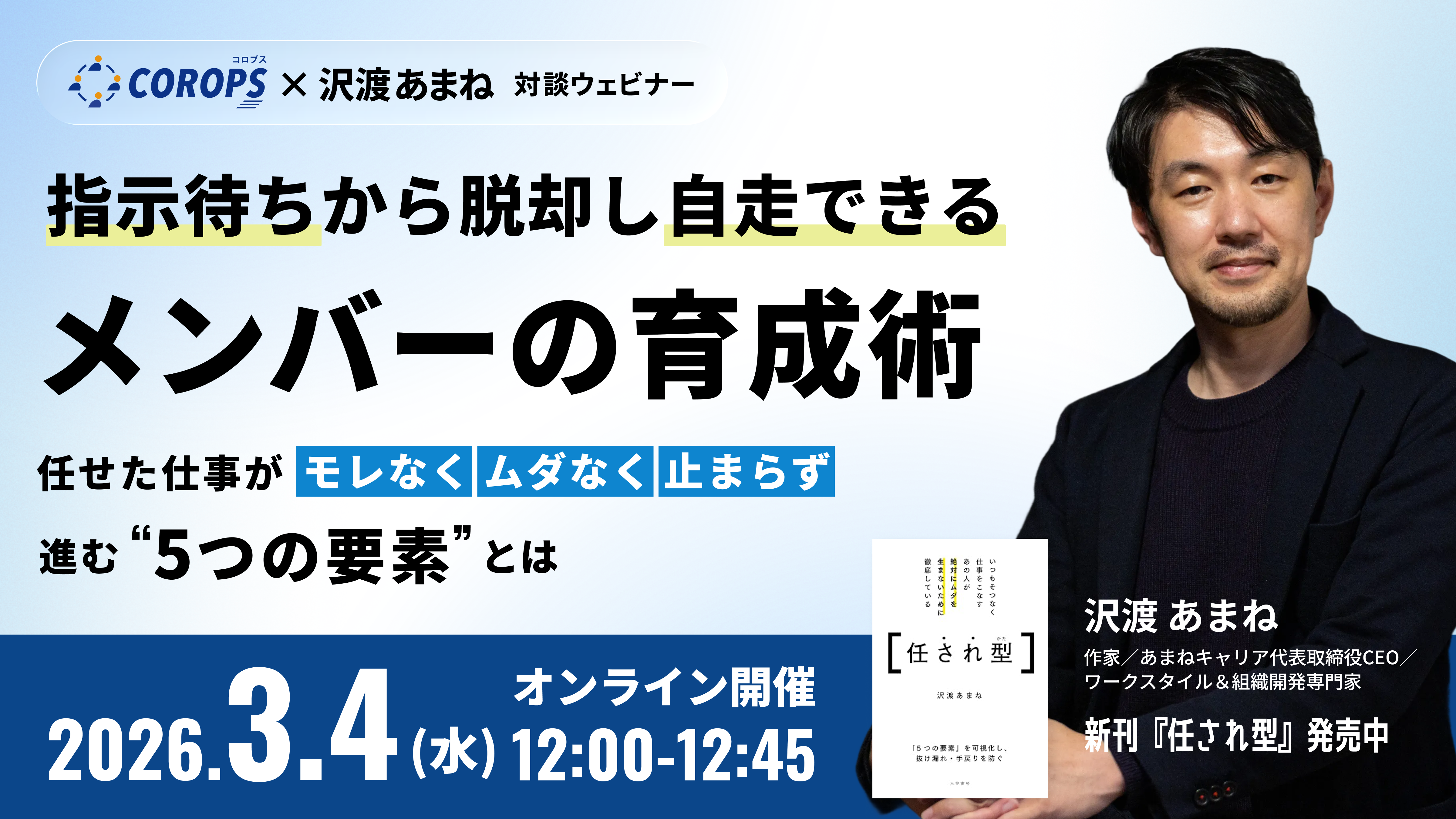 【COROPS×沢渡あまね】指示待ちから脱却し自走できるメンバーの育成術 ~任せた仕事がモレなく・ムダなく・止まらず進む”5つの要素”とは~