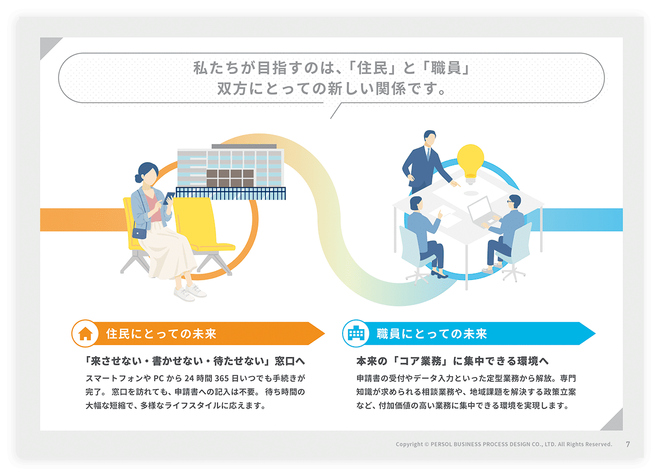 - 私たちが目指すのは、「住民」と「職員」双方にとっての新しい関係です。