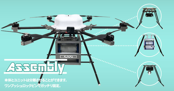 ドローンの下部ユニット自体を用途に合わせて交換できる為、利用目的に応じ、ユーザーでのカスタマ