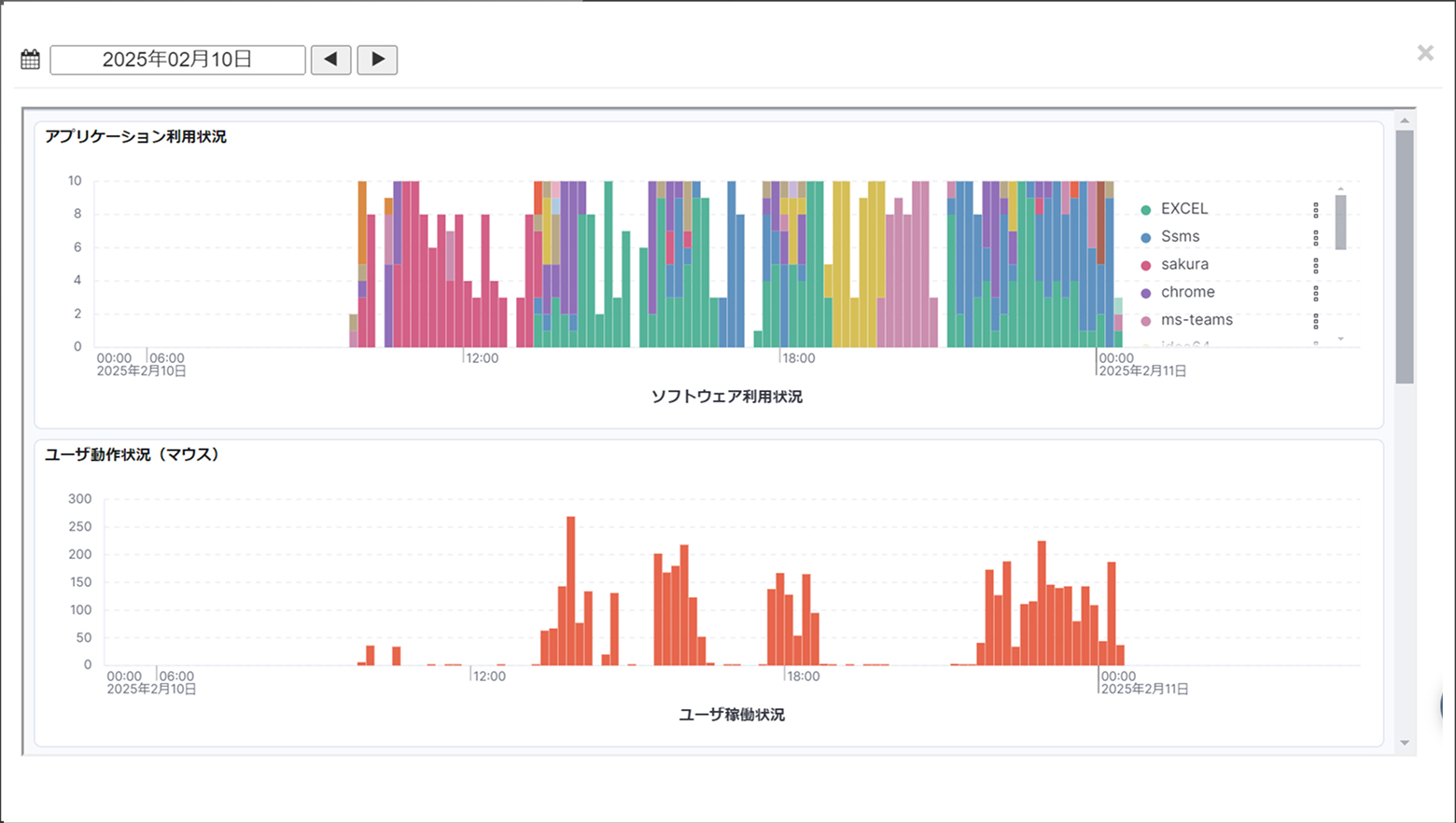 データを記録「はたらき方が見えない」従業員の使用アプリケーションやウィンドウタイトルを取得しマウス・キーボードなどの無操作を検知することで生産性の高いはたらき方への支援・指導に役立つデータを蓄積します。