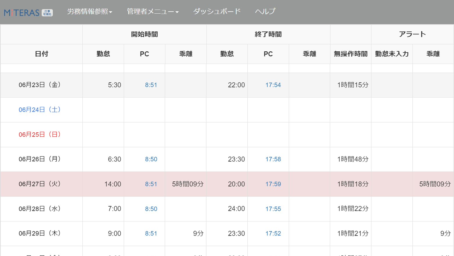勤怠データとPC稼働ログの突合で、
