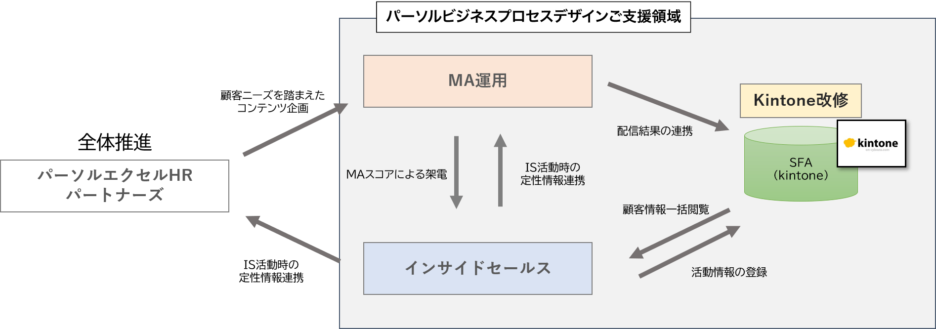 「MA活動は兼ねてより実施していたが、SFAとして活用しているkintoneとの連携やフィールドセールスへの効率的な連携が出来ていなかった。そんな中、セールスとシステム両面の視点を持っているパーソルビジネスプロセスデザインに関与してもらうことによって、MAの状況も考慮したkintoneの改修ができることがメリットとして考えられた。