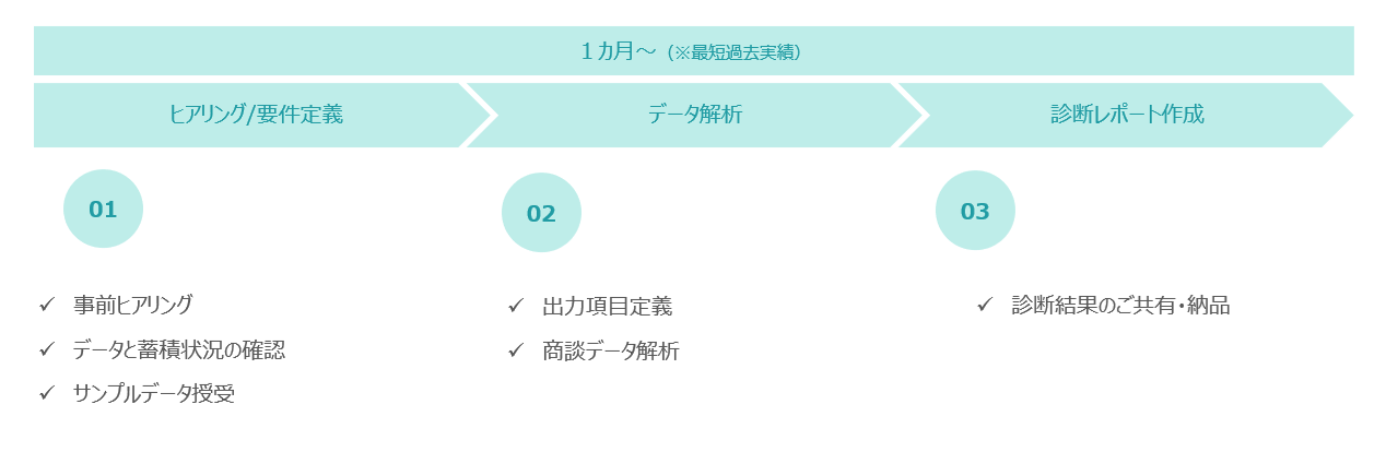 ※見積り金額は対象解析データ数(100商談程を想定)、データ蓄積有無、元データ状態などの