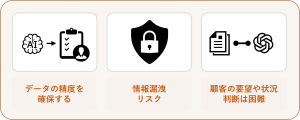 また、ChatGPTの回答だけで完結せず、目の前の顧客に対する感じ取る力や対応力といった、AIでは補い得ない人間の判断力や感性の重要性を理解することが必要です。