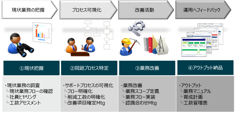 ここでは、ご自身が自社の営業バックオフィスの改革を行うという前提で、その進め方の一部をご紹介します。
